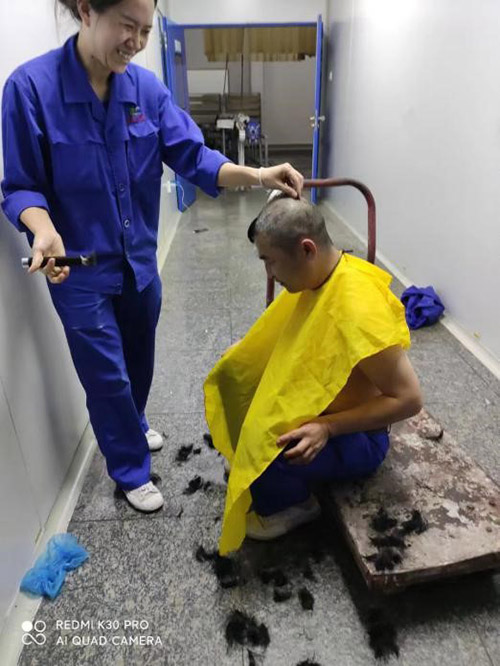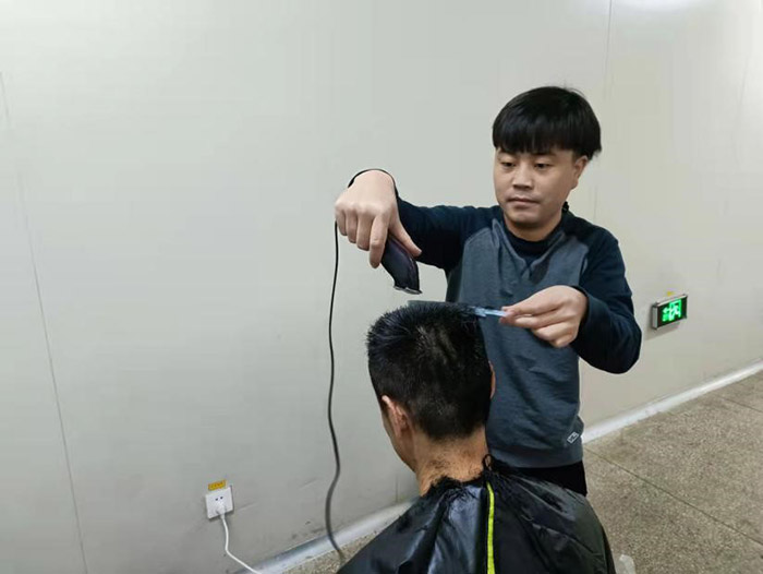 這一幕發(fā)生在11月21日公司中提車間。疫情阻擊戰(zhàn)開始至今已將近一月,為做好抗疫情保生產(chǎn)工作,公司采取了封閉式管理。500多名干部員工駐廠,堅守崗位,加班加點,維護了廠內(nèi)良好的生產(chǎn)生活秩序。然而,封控近一個月,越來越多的人有了理發(fā)需求。尤其是男職工,一個個發(fā)壓眉、鬢過耳,凌亂而萎靡的樣子,讓人看在眼里急在心里。