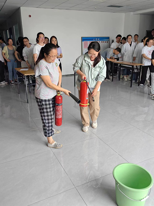 逃生演練結(jié)束后組織人員在貨梯門前空闊處進行滅火演練及移動式消防器材的滅火演示,全體員工在專業(yè)人員的指導(dǎo)下進行現(xiàn)場實地操作;安全員講解關(guān)于新址實驗樓建筑消防設(shè)施、消防設(shè)備的性能特點及作用;使大家學(xué)習(xí)并了解新實驗樓建筑的消防設(shè)施、消防設(shè)備及滅火器材的使用方法、注意事項。王俊峰院長就本次消防應(yīng)急逃生演練作總結(jié),并對今后的消防工作進行安排部署。