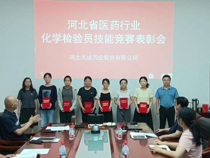 8月8日,公司在三廠會議室召開河北省醫(yī)藥行業(yè)化學(xué)檢驗技能比賽表彰會,對在此次賽事中斬獲佳績的團(tuán)隊及個人進(jìn)行表彰。中心化驗室、道恩藥業(yè)化驗員代表現(xiàn)場參會,渤海分公司化驗室人員通過小魚易連線上同步參與。會上,董事長王振剛發(fā)表重要講話,向獲獎集體與個人表示熱烈祝賀,并結(jié)合行業(yè)發(fā)展態(tài)勢對全體化驗員提出明確要求,為公司高質(zhì)量發(fā)展注入強(qiáng)勁動力。