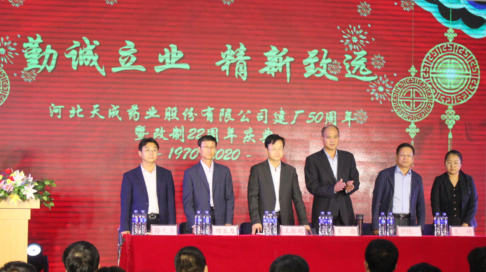 金秋十月,碩果盈枝,承載豐收的喜悅,不僅迎來了祖國71周年華誕和中秋佳節,也迎來了公司建廠50周年、改制22周年的紀念日。為更好地紀念歷史,歌頌新老天成人的先進事跡,矢志不移地傳承“制好藥 為人民”的企業經營宗旨,弘揚“勤誠立業 精新致遠”的企業核心文化,9月29日,公司在三分廠活動室舉辦公司建廠50周年暨改制22周年慶典大會。公司董事會成員、天成藥業、道恩藥業、渤海分公司、天津藥物研究院的干部員工以及部分退休老干部齊聚一堂,共同參加慶典。