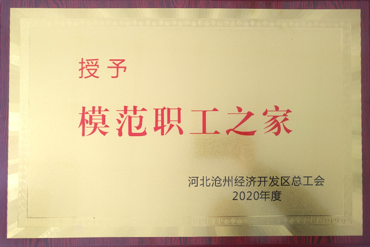 公司被河北滄州經(jīng)濟(jì)開發(fā)區(qū)總工會(huì)授予2020年度模范職工之家榮譽(yù)稱號(hào)