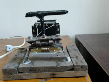 自制熱熔壓片機(jī)初級(jí)產(chǎn)品制作完成的那天,我們很激動(dòng),像迎接一個(gè)新生的嬰兒,又像學(xué)生答完考卷等待老師的評(píng)分。可是,初期的試驗(yàn)結(jié)果卻給我們潑了一盆冷水。自制熱熔壓片機(jī)初級(jí)產(chǎn)品制出的樣品薄厚不均,透明度差,根本不符合紅外光譜檢驗(yàn)的要求,在這種情況下,我們沒(méi)有灰心,經(jīng)過(guò)進(jìn)一步的技術(shù)討論,發(fā)現(xiàn)熱熔壓片機(jī)的構(gòu)型是對(duì)試驗(yàn)結(jié)果影響最大的因素。我們自制的熱熔壓片機(jī)由下列四部分組成:電源連接部分、控制變壓器、加熱板和成型板。制取薄片樣品時(shí),采用絕緣電線與電源連接,為自制熱熔壓片機(jī)供電;通過(guò)控制變壓器獲取合適的電壓為加熱板供熱;將樣品置于加熱板上;手壓成型板,與加熱板重合擠壓樣品成型。其中加熱板采用手動(dòng)壓片的方法,這就是造成實(shí)驗(yàn)失敗的根本原因。